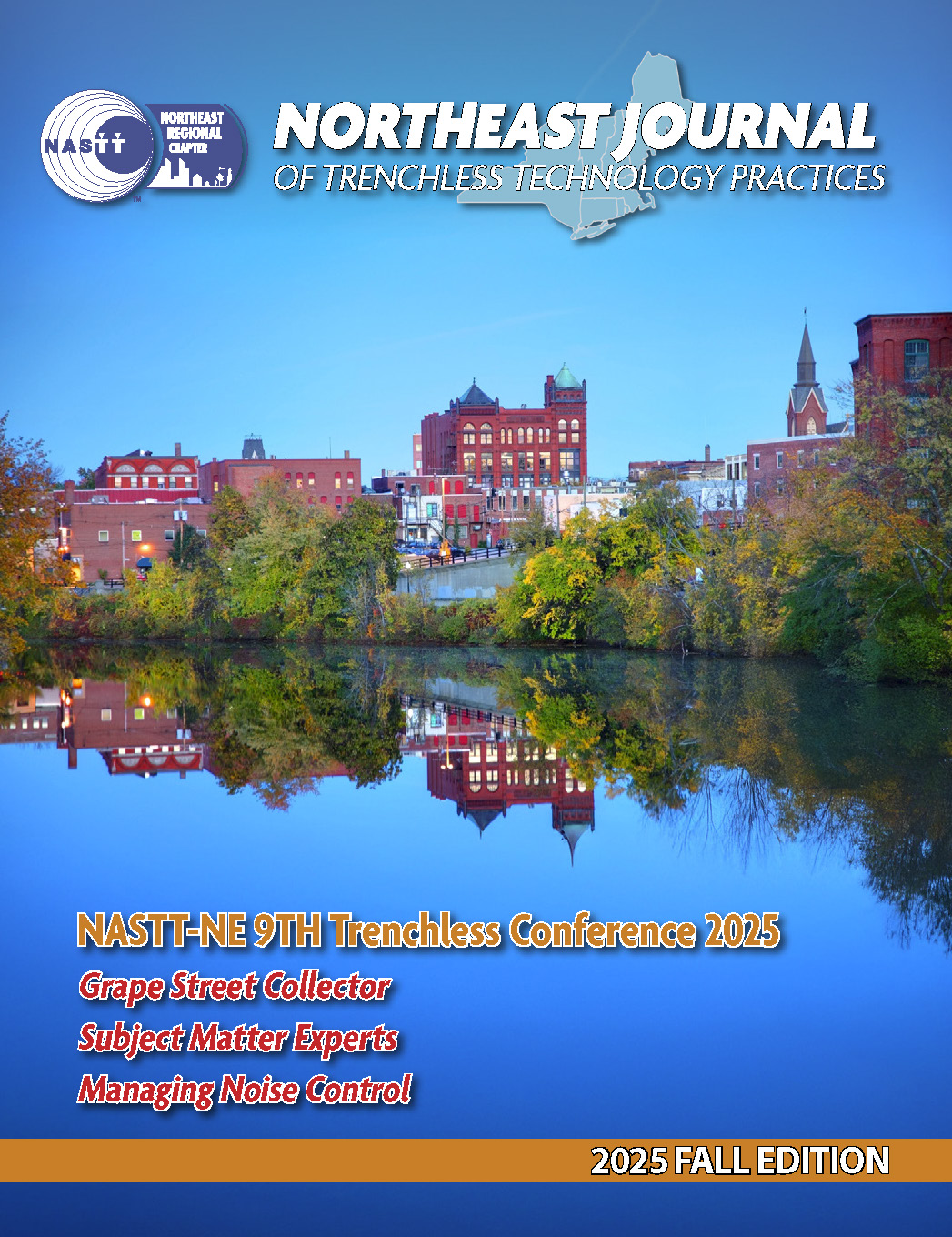 The annual NASTT-NE Journal highlights trenchless technology projects throughout our region and is available as a free download. The articles have been submitted by members of NASTT-NE and the magazine is published by A to B Publishing Inc. For information regarding submitting an article or advertising in the NASTT-NE Journal, please contact Andrew Pattison, A to B Publishing: 204-275-6946.